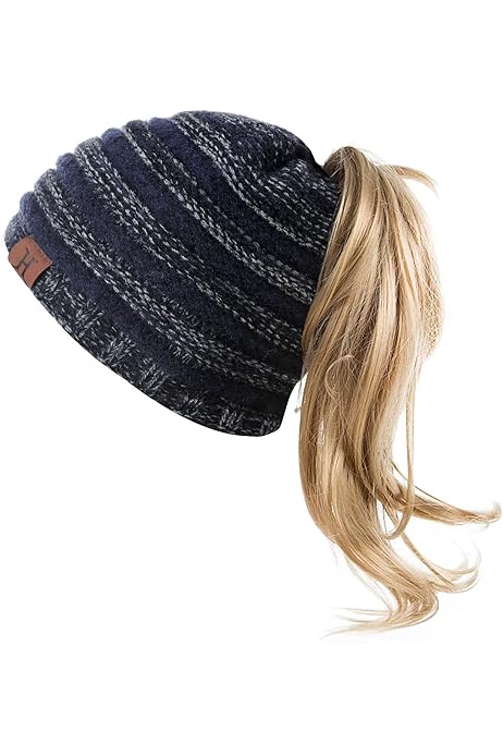Amazon Com Cierto Women Ponytail Beanie Hat Warm Fleece Lined Womens And College Student Youth Girls Beanie For Pony Tail And Messy Bun Hair Knit Stocking Skull Hat For Ski Running Cycling